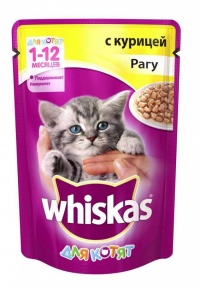 Рационы Whiskas® для котят Рагу с курицей — это сбалансированный рацион для здорового роста Вашего малыша. Котенок с удовольствием...