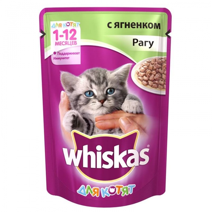 Корм Whiskas® для котят Рагу с лососем — это сбалансированный рацион для здорового роста Вашего малыша. Котенок с удовольствием попробует маленькие нежные кусочки с лососем в ароматном соусе. Рацион Whiskas® для котят создан специально, чтобы Ваш малыш получил все самое полезное и вкусное для здорового роста и развития. Котята активно растут и с первых дней нуждаются в правильном питании. Корм Whiskas® для котят создан с учетом всех особенностей развития организма котенка.