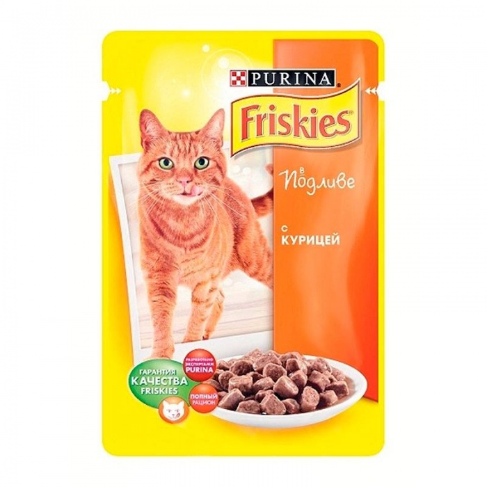 ԿԵՐԵՐ ԿԱՏՈՒՆԵՐԻ > Պահածոյացված եւ փափուկ կերեր > "FRISKIES" для взрослых кошек с курицей в подливе 100 г