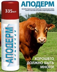 Ապոդերը ցուցված է գյուղատնտեսական կենդանիներին՝ վերքերի մշակման համար: Նախապես մաքրել ախտահարված հատվածը և փչել 15-20սմ հեռավորության...