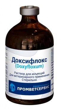 Доксифлокс Doxyfloxum Описание Комплексный противомикробный препарат в форме инъекционного раствора, обладающий широким спектром противомикробного...