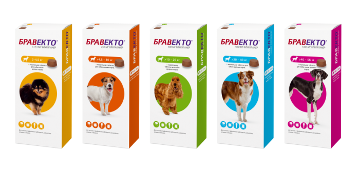 Бравекто® выпускают расфасованным по 1 или 2 жевательные таблетки в блистеры из алюминиевой фольги.