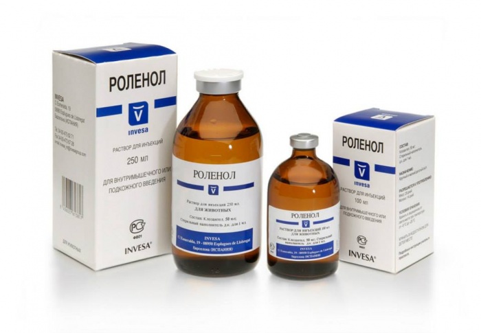 Антипаразитарный препарат, содержащий в качестве действующего вещества 5% клозантела. По внешнему виду представляет собой прозрачный раствор желтого цвета. Обладает широким спектром антипаразитарного действия, активен в отношении нематод, трематод и личинок оводов. Клозантел, входящий в состав роленола, нарушает энергетические процессы в организме паразитов, что приводит их к гибели. Клозантел хорошо всасывается из места инъекции и проникает во все органы и ткани организма, достигая максимальных концентраций через 8 часов после подкожного введения. Период полвыведения препарата из организма составляет 12 дней. Выводиться из организма в неизменном виде преимущественно с мочой и в незначительных количествах с фекалиями. Препарат умеренно опасен для теплокровных животных, в рекомендованных дозах не обладает эмбриотоксическим и тератогенным свойствами.