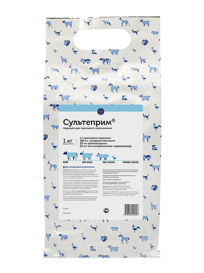 Սուլտեպրիմը ցուցված է կոլիբակտերիոզի,սալմոնելիոզի,բրոնխոպնևմոնիայի բուժման համար՝հորթերին,գառներին ,խոճկորներին և ճտերին:Հորթերին և գառներին դեղամիջոցը խմեցնում են ջրով կամ կաթով ՝օրը մեկ անգամ կերակրելուց 30րոպե առաջ/250մգ.-1կգ քաշին/ 3-5 օր:Հիվանդության ծանր դեպքերում դեղաչափը կարելի է հասցնել մինչև 500մլ-1կգ քաշին:Խոճկորներին և ճտերին դեղամիջոցը խառնում են կերի հետ /250մլ.-1կգ քաշին/ 3-7 օր: