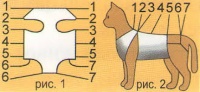 Приобрести подходящий аксессуар можно, если знать объем груди и длину спины кошки. Выпускается 2 размера, для стандартных и крупных животных. Стандартный вариант подойдет для питомца весом от 3 до 8 кг (обхват груди 31, длина – 38 см), а большая попона понадобится, если вес животного – в диапазоне 5-10 (ОГ – до 48, длина 40 см).